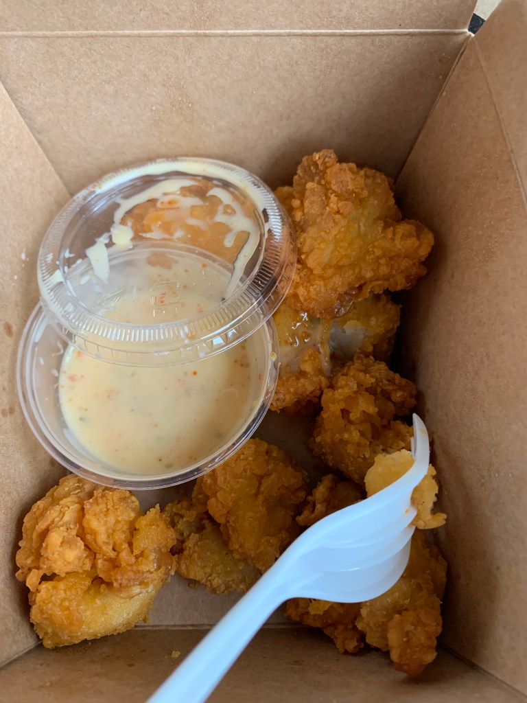 I decided to get Karaage, Japanese fried chicken, which I’ve never had and always wanted to try. It came with togarashi sauce, which I also never had, but it’s got a surprising kick. Delicious snack. I, of course, could not resist getting a donut from Lee’s famous donuts. It was the one place our tour guide said we had to try. Apparently in the summer, the line is half way down the block. I ended up just getting a honey glazed one because I didn’t want anything too much, but wow. I’m a donut judger, and this donut was probably one of the best donuts I have ever had.