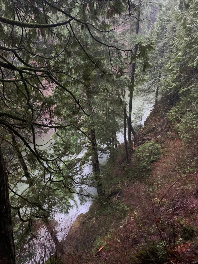 I tried to take some pictures to show how high the walkways are. It’s not just the suspension bridge, but there are walkways through the trees. I’d love to come at other times when there are more animals out. Apparently, in the spring they see a lot of bald eagles. Make sure you click on the picture on the right so you can see the people in the green ponchos on the walkways.