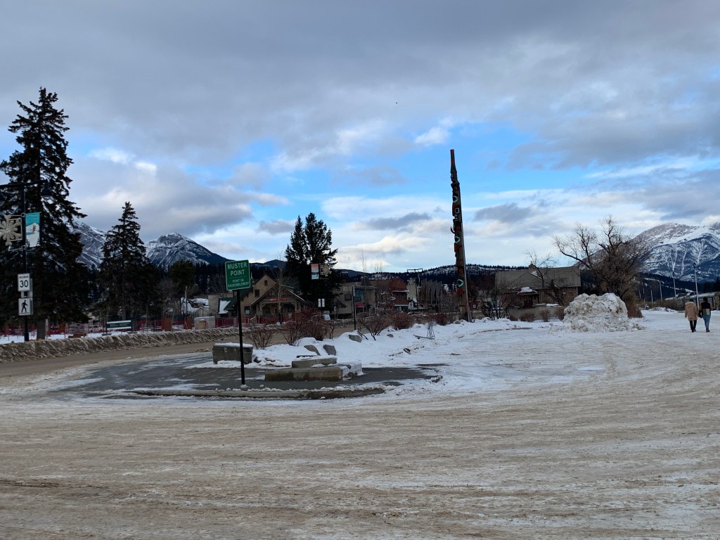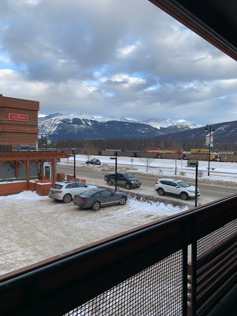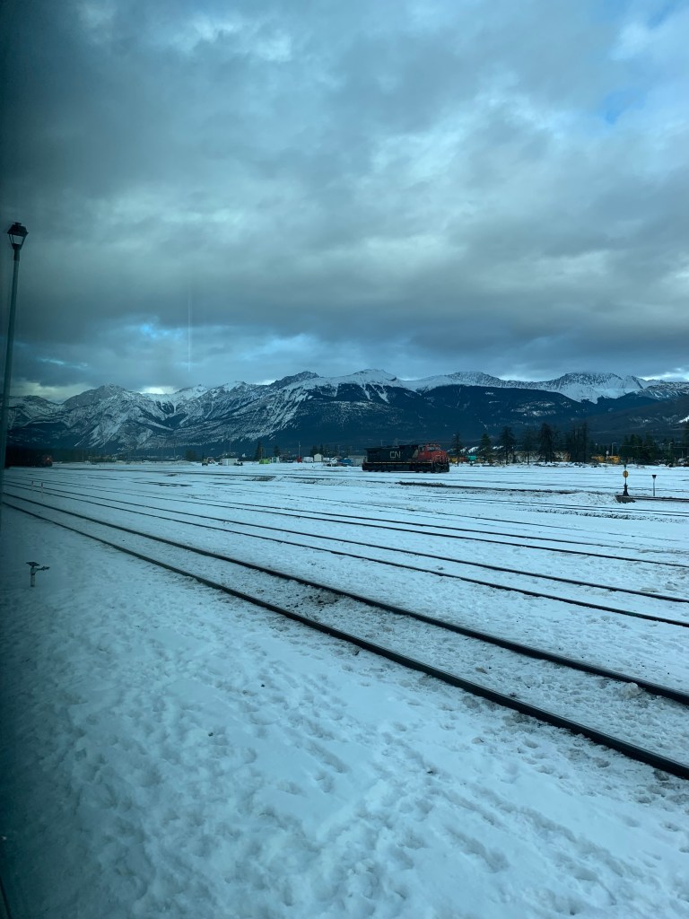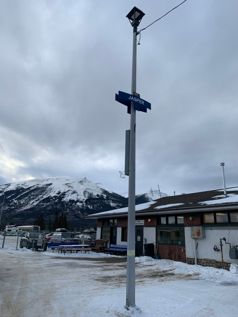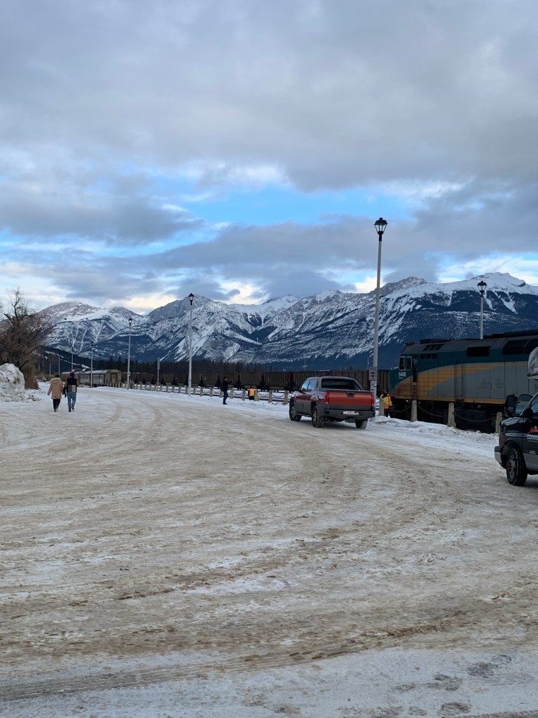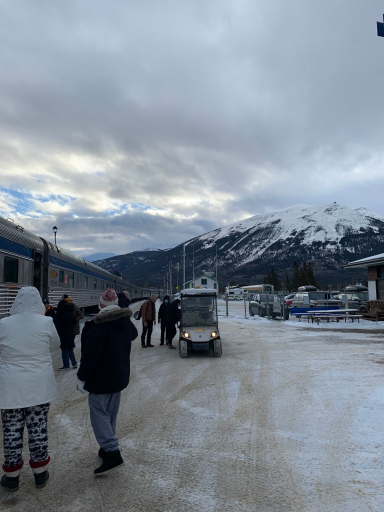 I had packed up everything about an hour before to make sure I didn’t leave anything on the train. We got off the train at the station, and there was someone waiting for us to take us to our hotels. The people who were going onward on the train were also allowed to get off to take pictures, but because the train was late, they were only going to be able to be in Jasper for about an hour.
