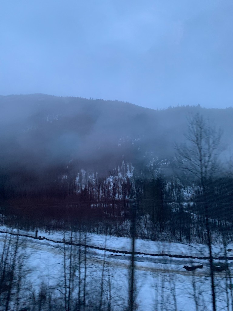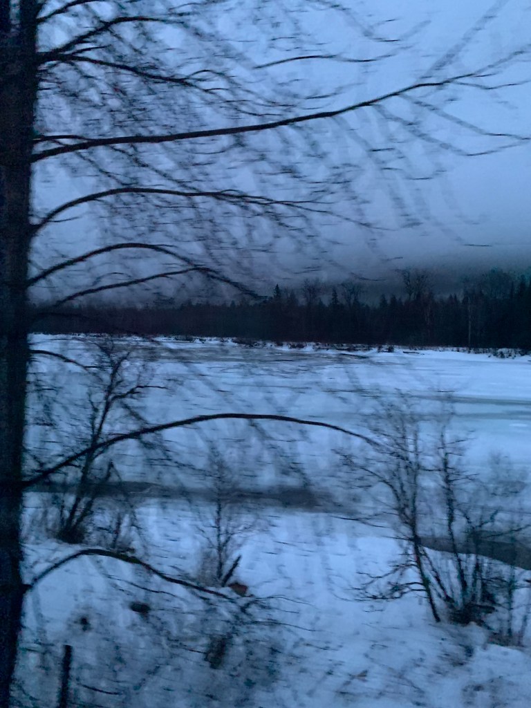 I had every intention of going back to the dome car, but I got really cozy in my room. So the rest of my pictures from the trip are from my room. Not sorry really because it was all beautiful. It got snowier and snowier as we went north.