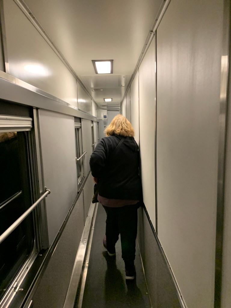 My plan was to shower and make it to breakfast at 6:30. This is like a dream for me. I’m hungry at 6:30 since I generally get up at 3. Normally, the earliest I can get hot breakfast is at 7 unless I’m near a diner, so the idea of getting hot breakfast at 6:30 in heaven. Now that I know the routine, I will also exercise before shower time when I’m back on the train. I have space in my room and time.