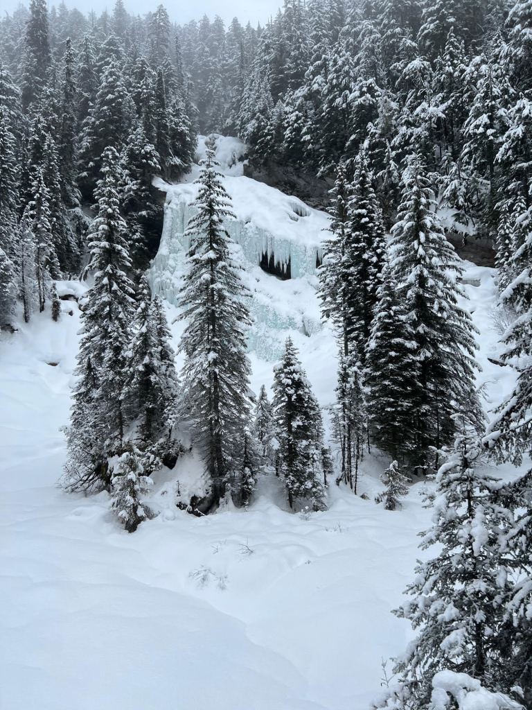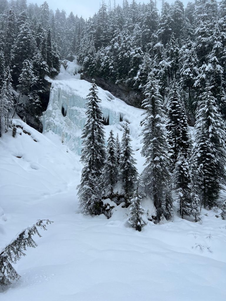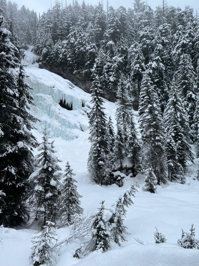 One of the highlights was Pyramid Falls. In the summer, this is a beautiful waterfal, but I’m happy I came in the winter to see it frozen over. The blue tinge is from the minerals in the water.