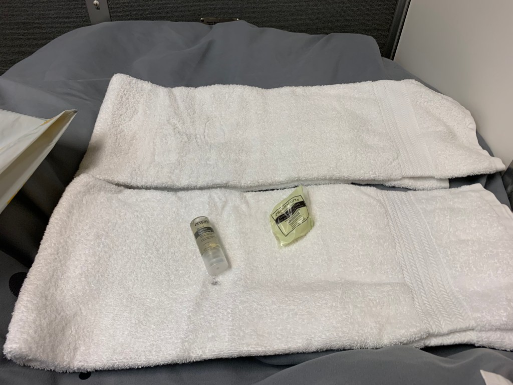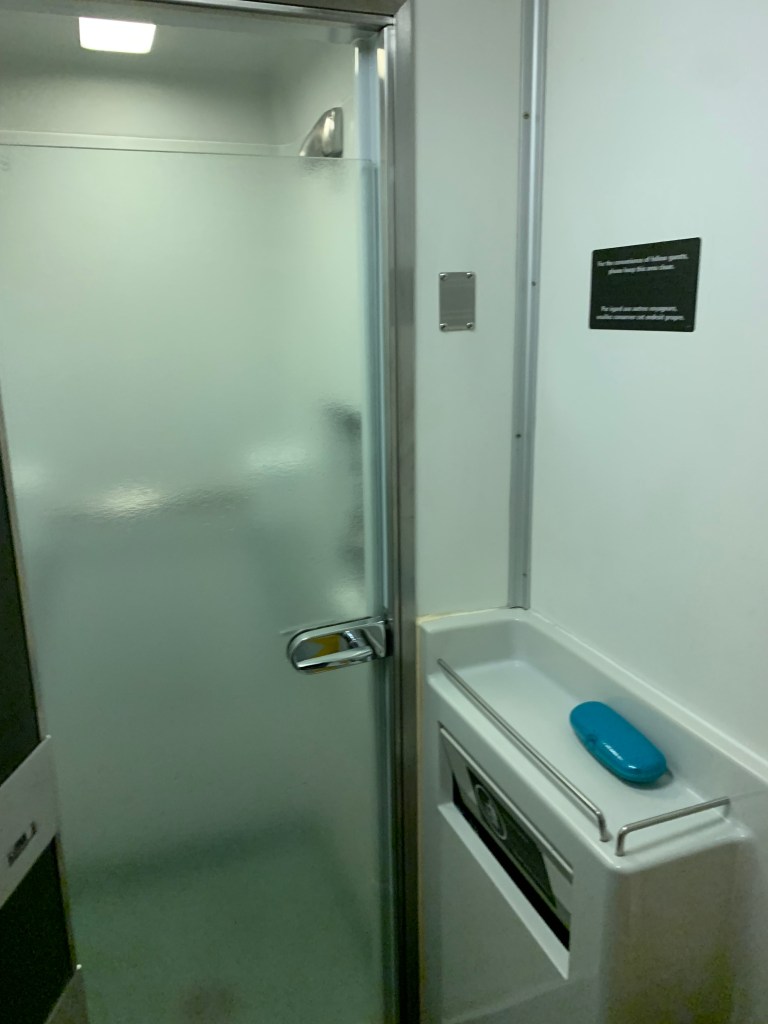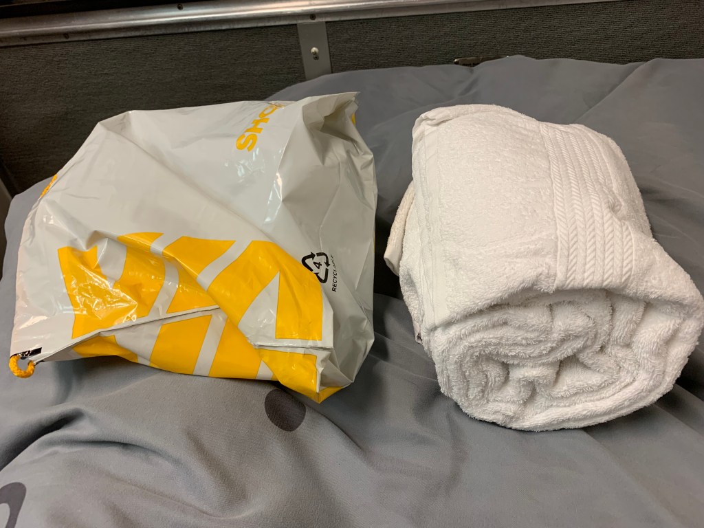 What I didn’t say in yesterday’s post was that you get a shower kit when you are on the train. In the bathroom, there are already washcloths and handtowels for each person. In addition to these, there is a shower kit per person.