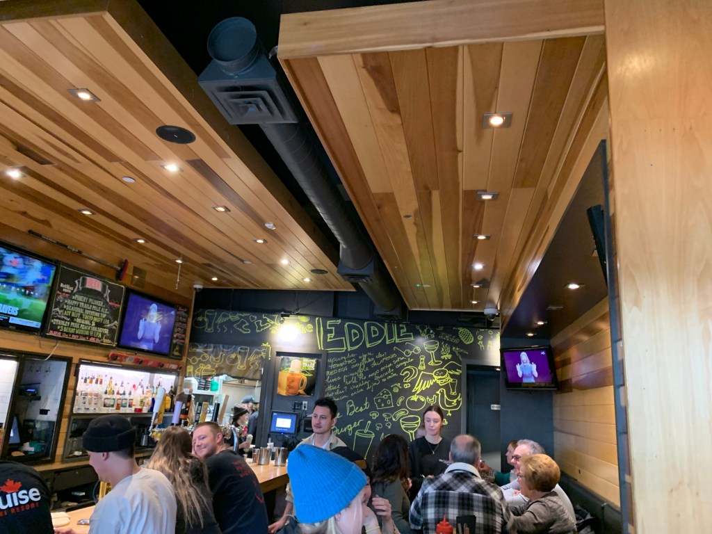 Eddie’s Burger & Bar was one of the places that our tour guide recommended. It’s the reason why I started texting people for the burger poll before I was even on the gondola. I specifically asked her if it was a place that would be fine for someone eating alone. For example, I wanted to treat myself to fondue, but that place only serves two or more.