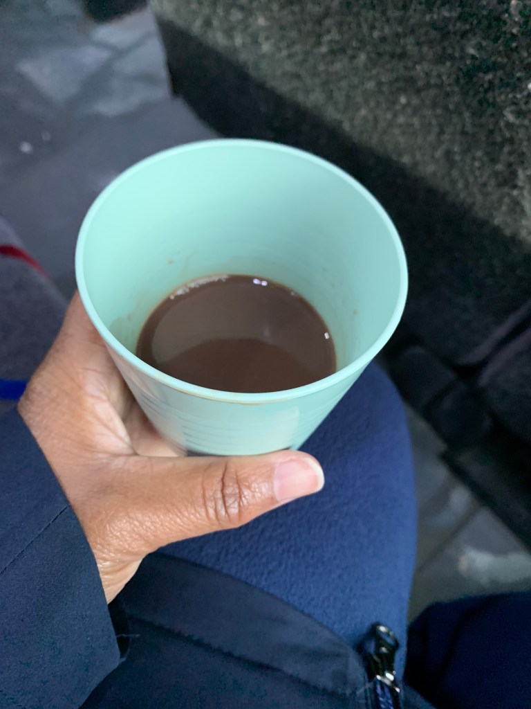 I chose not get my hot chocolate and walk around, but I had my snack when I got back on the bus. I am not that coordinated to drink and walk at the same time!