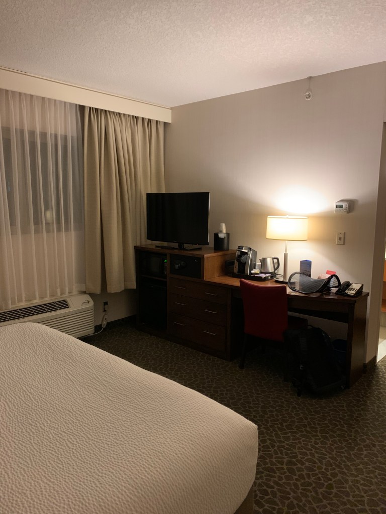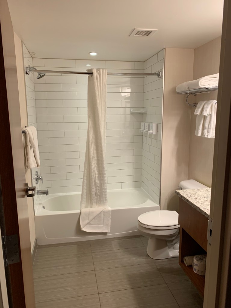 It was actually nice coming back to a place with which I was familiar. I have a different room at the same hotel: The Crimson. It’s one that is wheelchair accessible, so it’s on the first floor and much closer to the front desk than I was before. I think they did that because they know I have a train to catch today and was only spending the night, so I didn’t need to be that close to the sauna or pool.