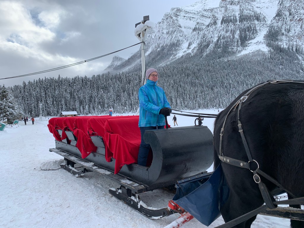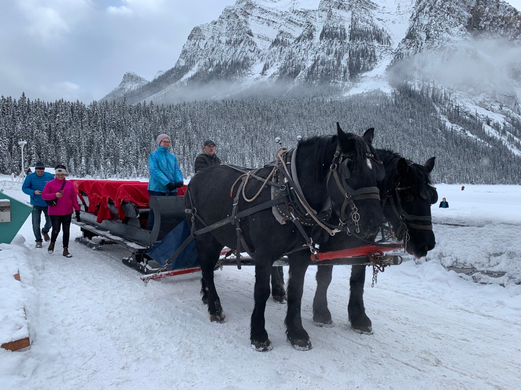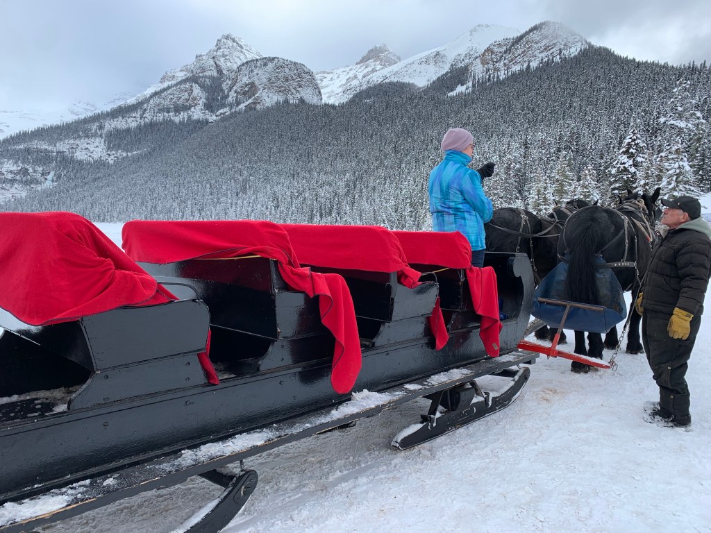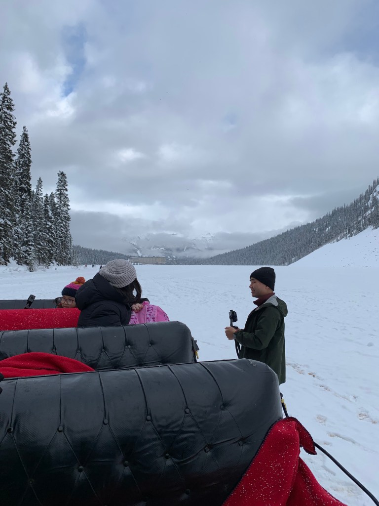 The sleigh actually goes onto the lake to turn around, so we got to see the lake while being on it from the sleigh.