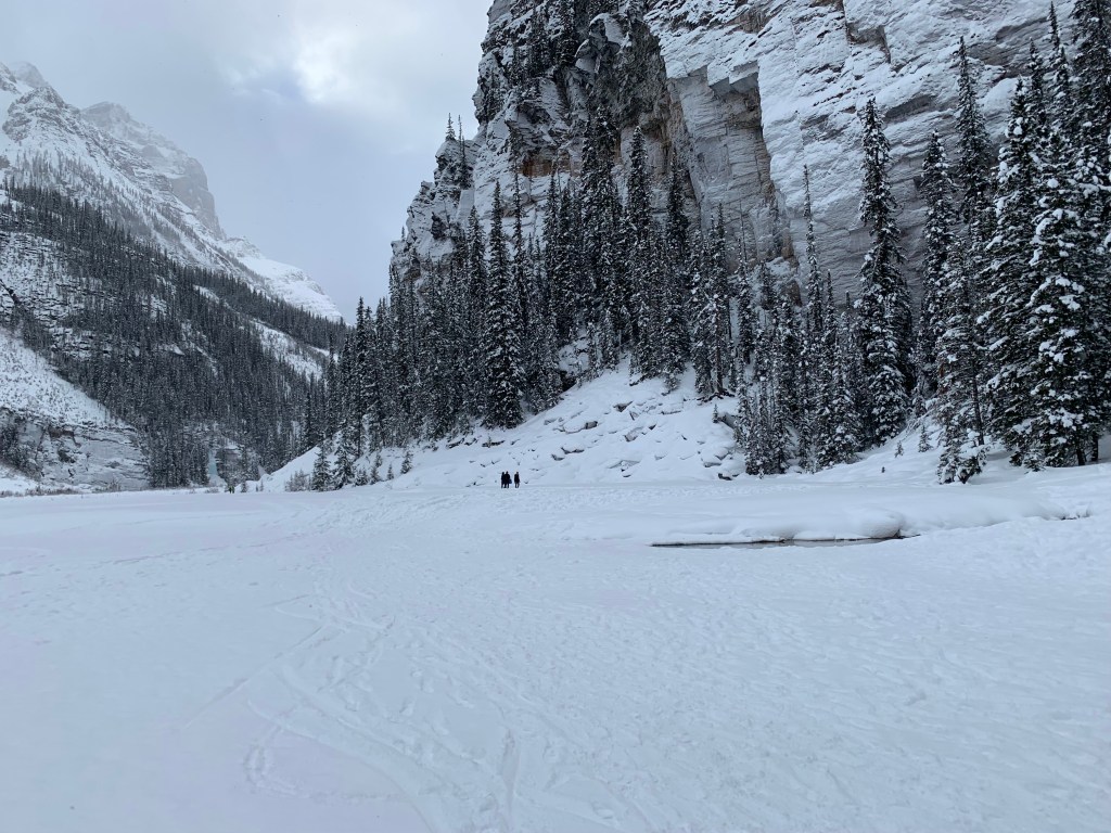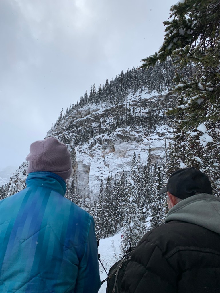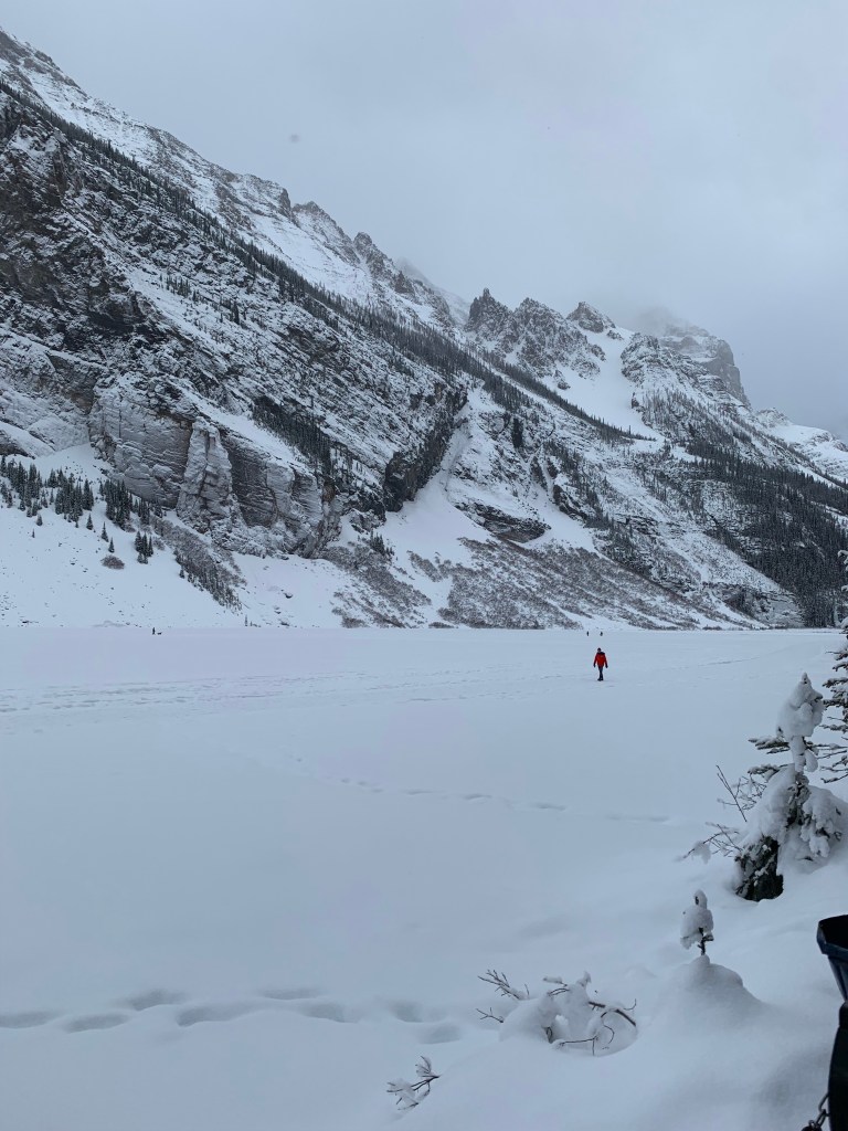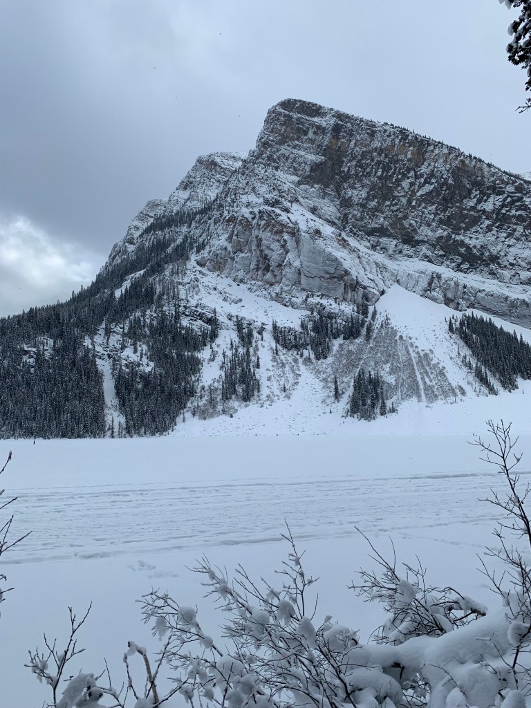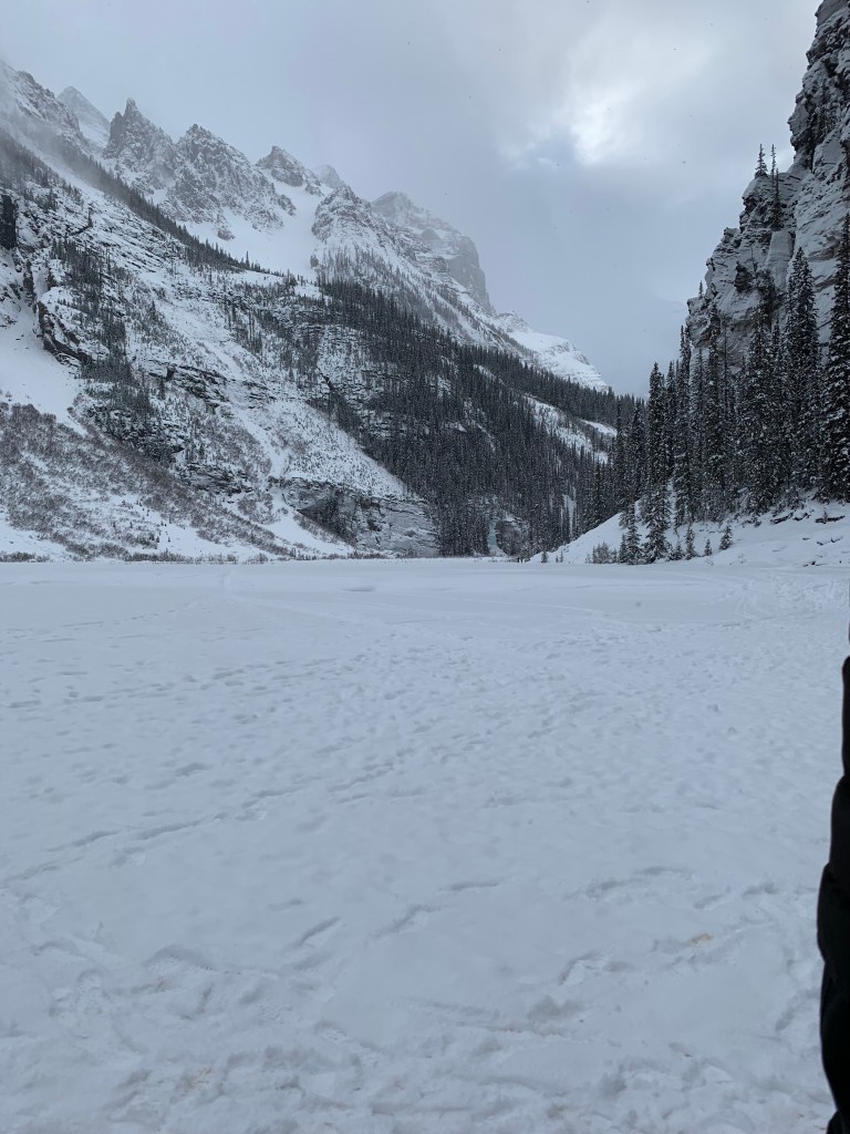 The drive back to Jasper took longer than the drive from Jasper because it had snowed some in between, but more importantly, we didn’t leave Lake Louise until 4 pm. It was already a bit overcast and there had been flurries all day, so it got dark fast. The bus driver did let us take a break to stretch our legs halfway, and there were even some people brave enough to go behind some of the snow dunes to go to the bathroom, but it was too dark for pictures.