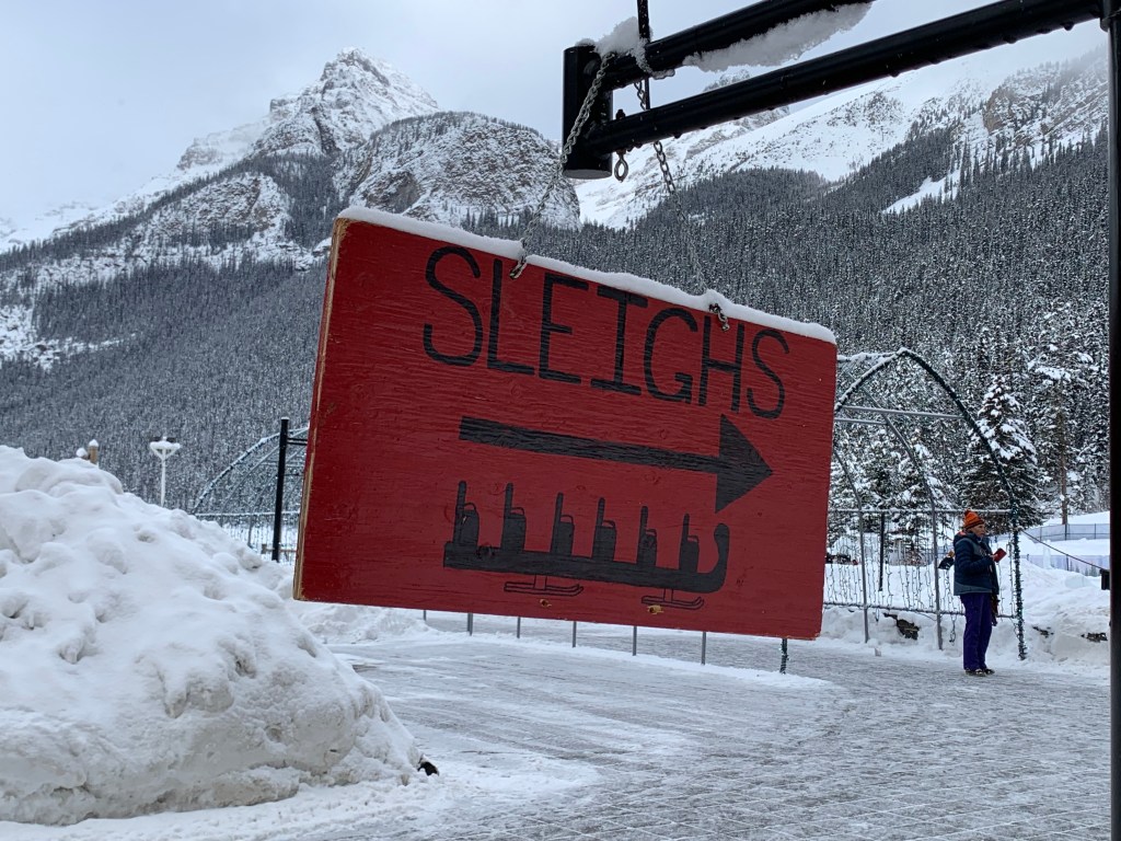My schedule for the morning was to pack up, check out of room by noon, leave my bags with the bell service, and check in for my 1 pm sleigh ride at 12:30. Everything went as planned. Or rather better because when I called the front desk asking for advice about this, they said they would just send someone up to get my bags and told me not to worry about them until I had to get my bus.