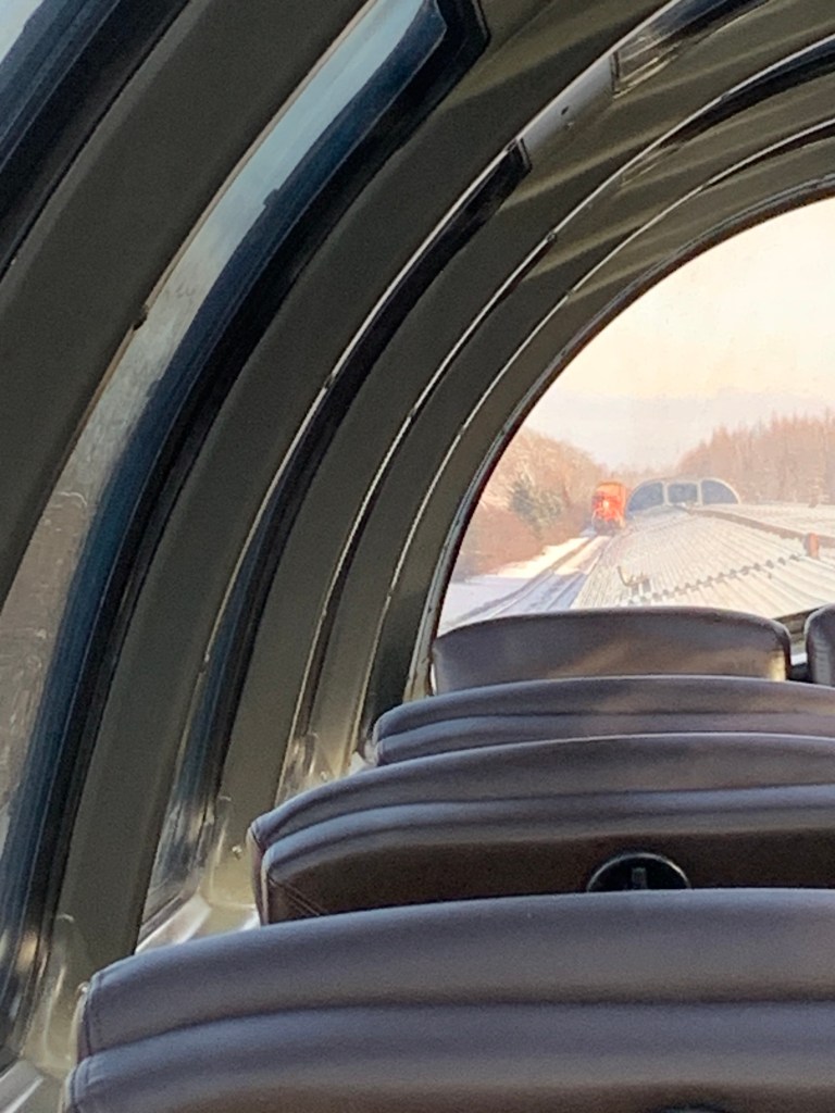 One of the other cool things about being in the dome car is when another train comes. You can see it from far away and watch as it gets closer.