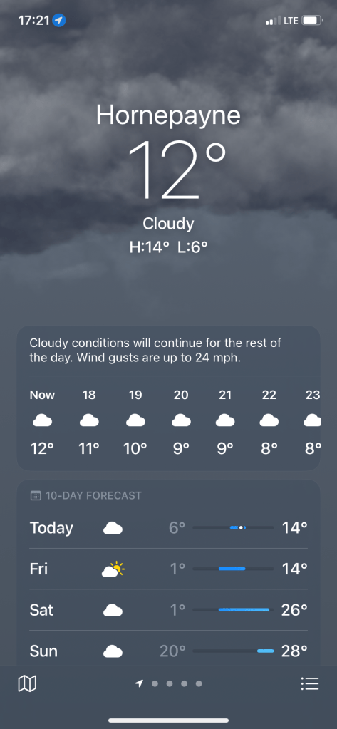 I finally, completed my journal entry for the day. Then, around 5 PM, we arrived in Hornepayne.