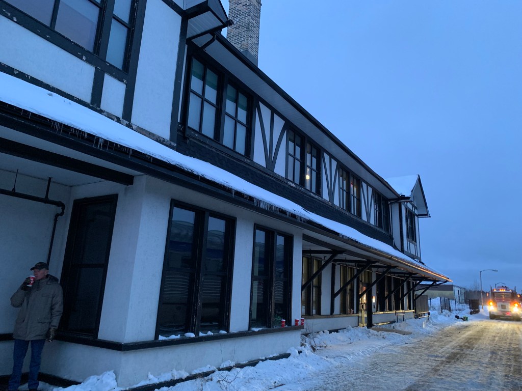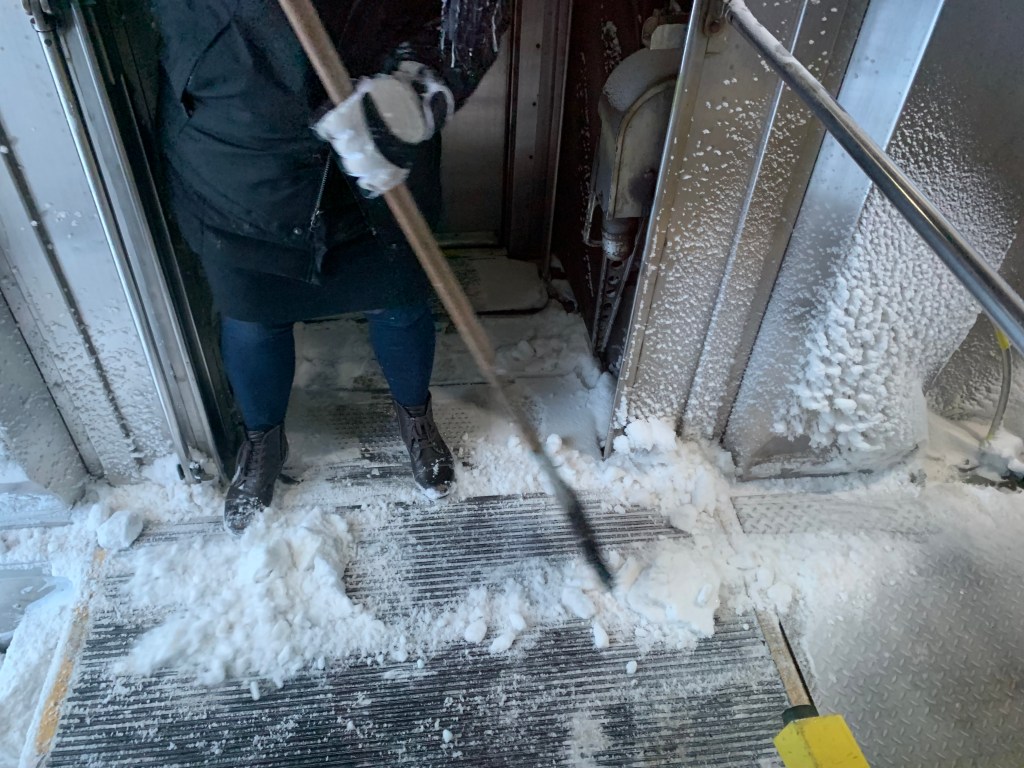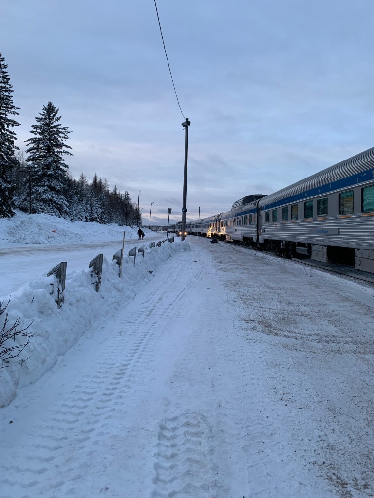 Before we could get off this time, though, one of the porters needed to scrape and sweep the snow off the area between cars. There was quite a bit here. It hadn’t snowed much while we were on the train, but the wind really blew snow up into the compartment.