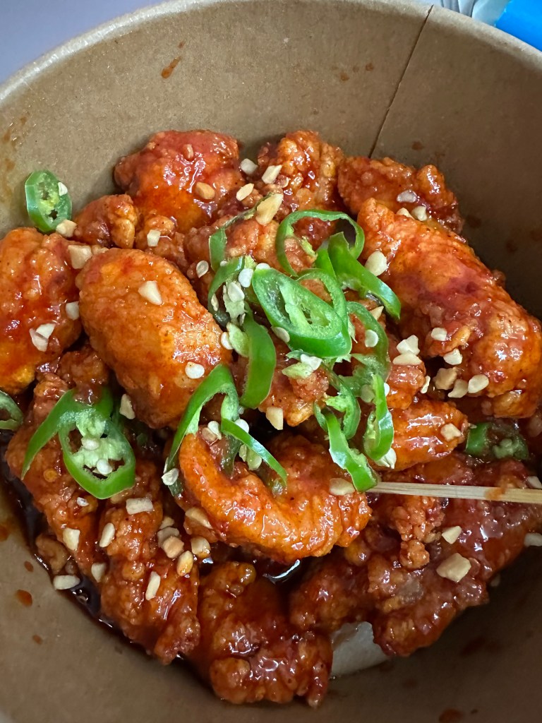 To get to the Lotte Mart, you have to go through the foodcourt. What did I pass? A chicken stand. Do you think I was going to leave Korea and not get Korean fried chicken? Do you know me at all? Besides, I did need something for dinner.
