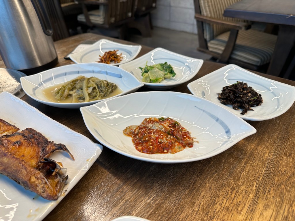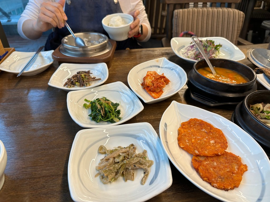But of course, we had to follow what mom says. Seunghye took me to lunch. The first place we went was closed, so we ended up at a place called Sandeul-Ae for a very traditional Korean meal.