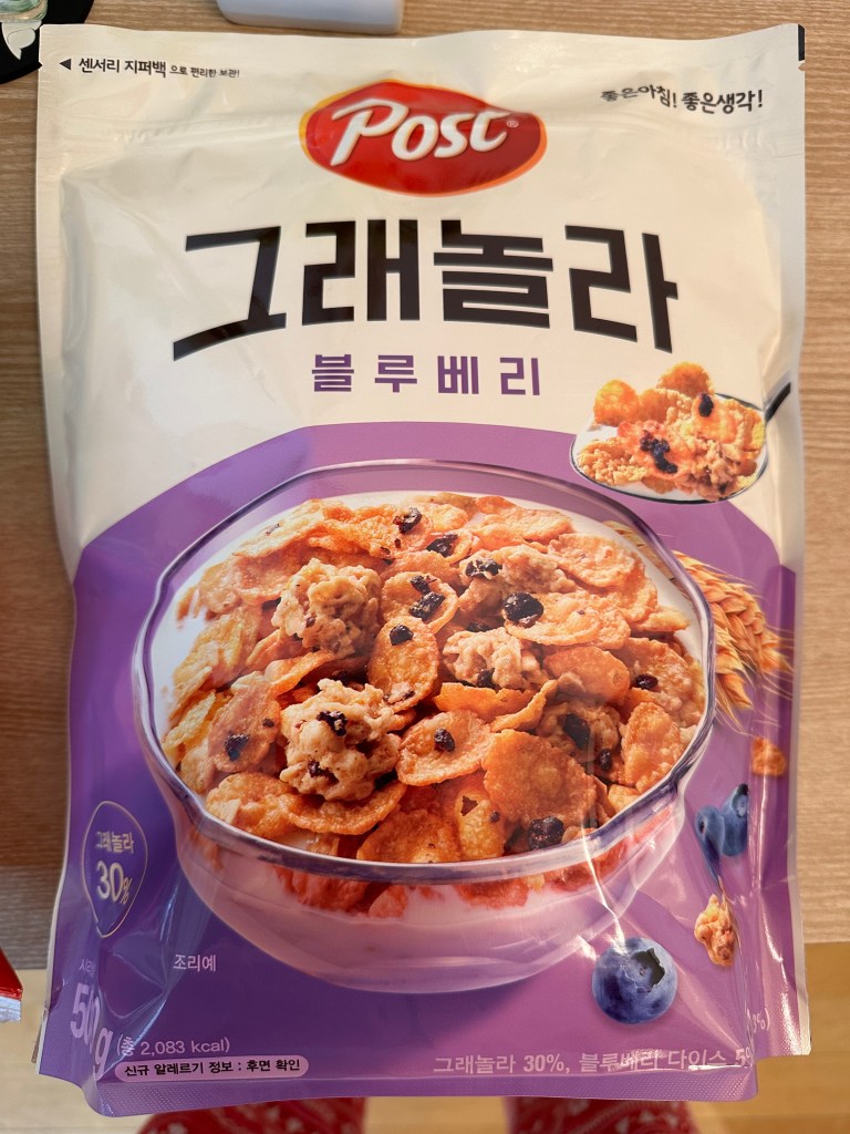 There is this cereal which I love by Post that I had for the first time in Seoul but have never seen in the US. To be fair, I couldn’t find it anywhere else in Seoul but in the Lotte Mart either. On past trips, even though the was a small grocery store right around the corner, I would take two lines of subway to go to a Lotte Mart to get this cereal. So of course, I was determined to see if this Mart had it or even if Post still makes it.