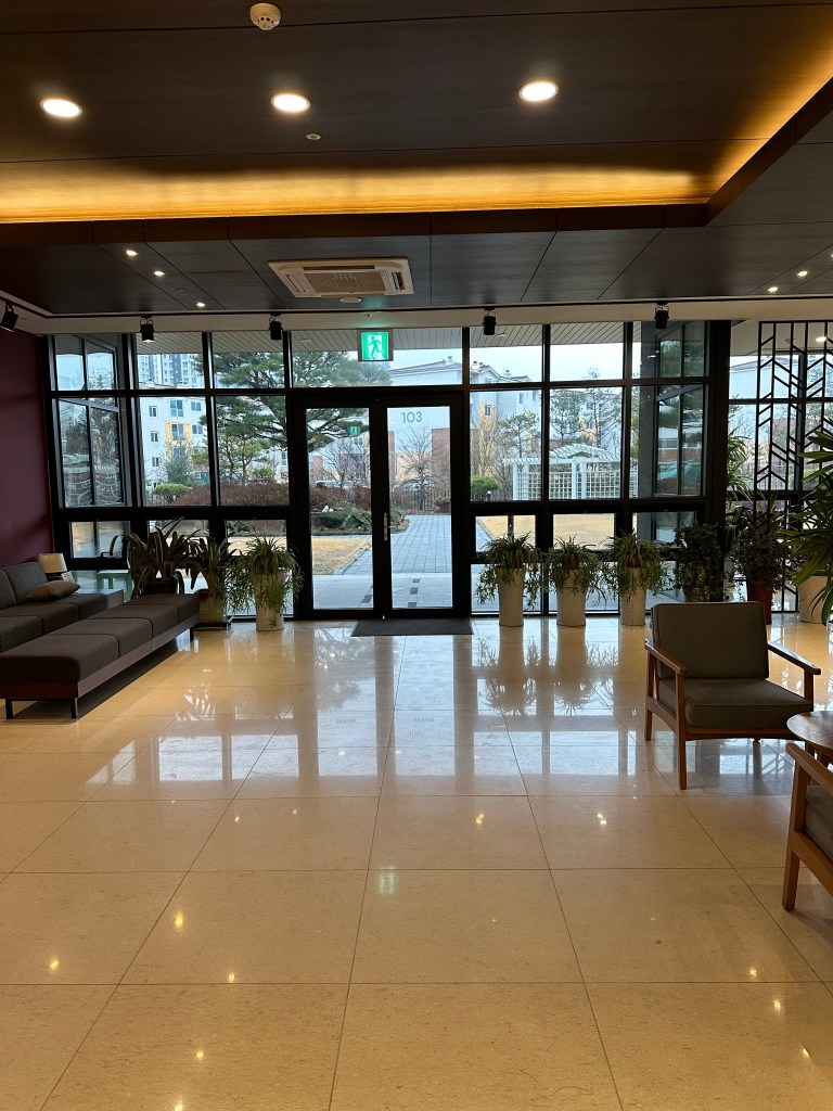 So pre-trip I masked up and washed my hands like it was 2020 again. I could not afford to get sick. I didn’t want to have anything go wrong with me coming here this time. The place where Seunghye’s mom lives now makes every visitor take a COVID test and takes their temperature upon arrival. You are not allowed to visit any resident not just if you have a positive COVID test but even if you have a slight fever.