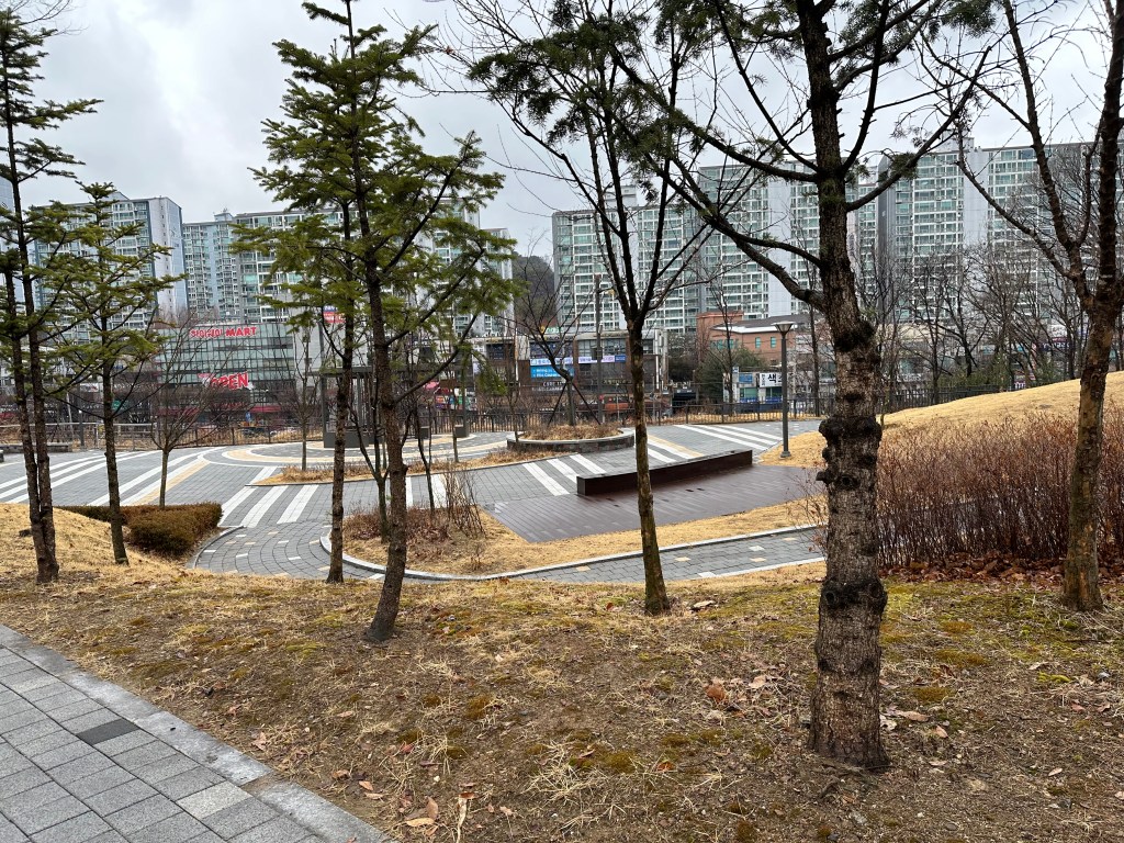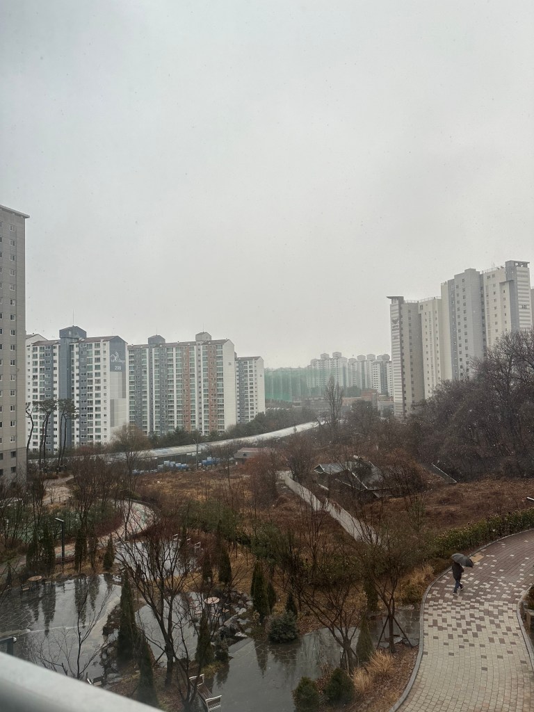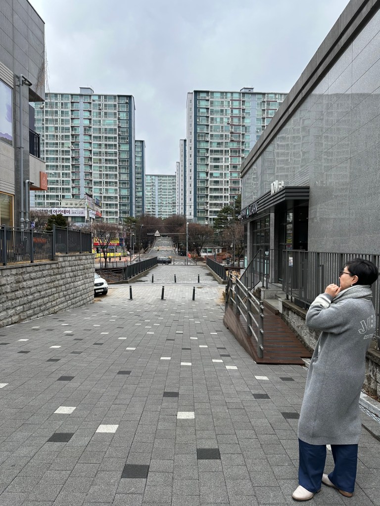 We sat for awhile and had tea, then we decided since the flurries had stopped to take a walk around her neighborhood since I haven’t seen many other towns in South Korea outside of Seoul.