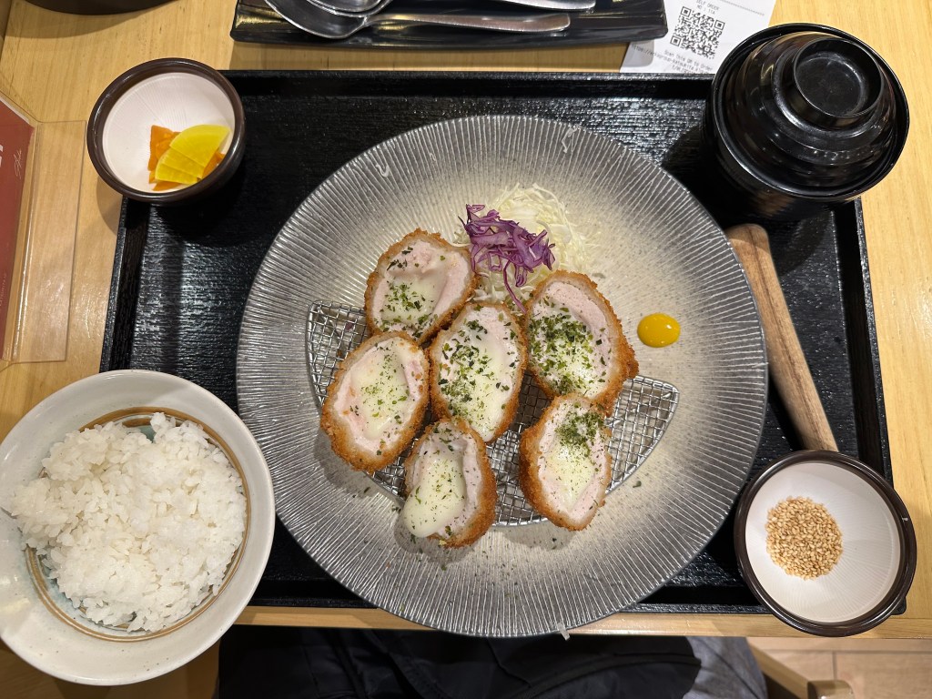 I knew right away what I wanted when I saw it because I haven’t been able to have it since I was in Seoul in the summer of 2017: cheese filled katsu! Yes, it was delicious, and yes the irony of me having something with cheese in Indonesia after lugging cheese halfway around the globe was not lost on me.