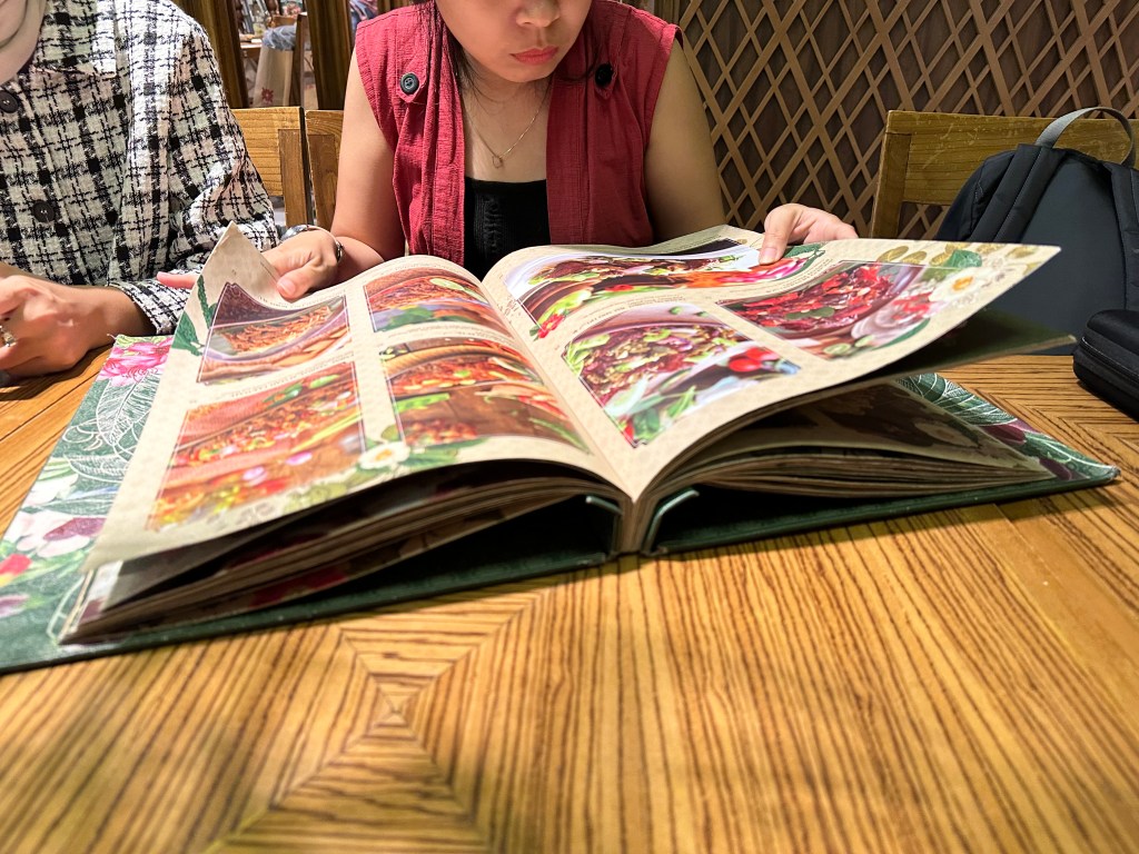 Another lovely space, but I don’t have many pictures of the space because we felt like when we got in, we needed to focus on the menu. For my American readers, think Cheesecake Factory menu times three! Look at the size of that thing.