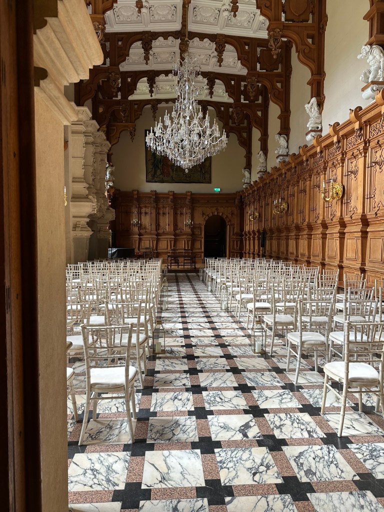 I tried to keep Jane from going over barriers that she insisted were for the wedding guests for tomorrow. We even got to see the set up in the Long Gallery for the wedding banquet.